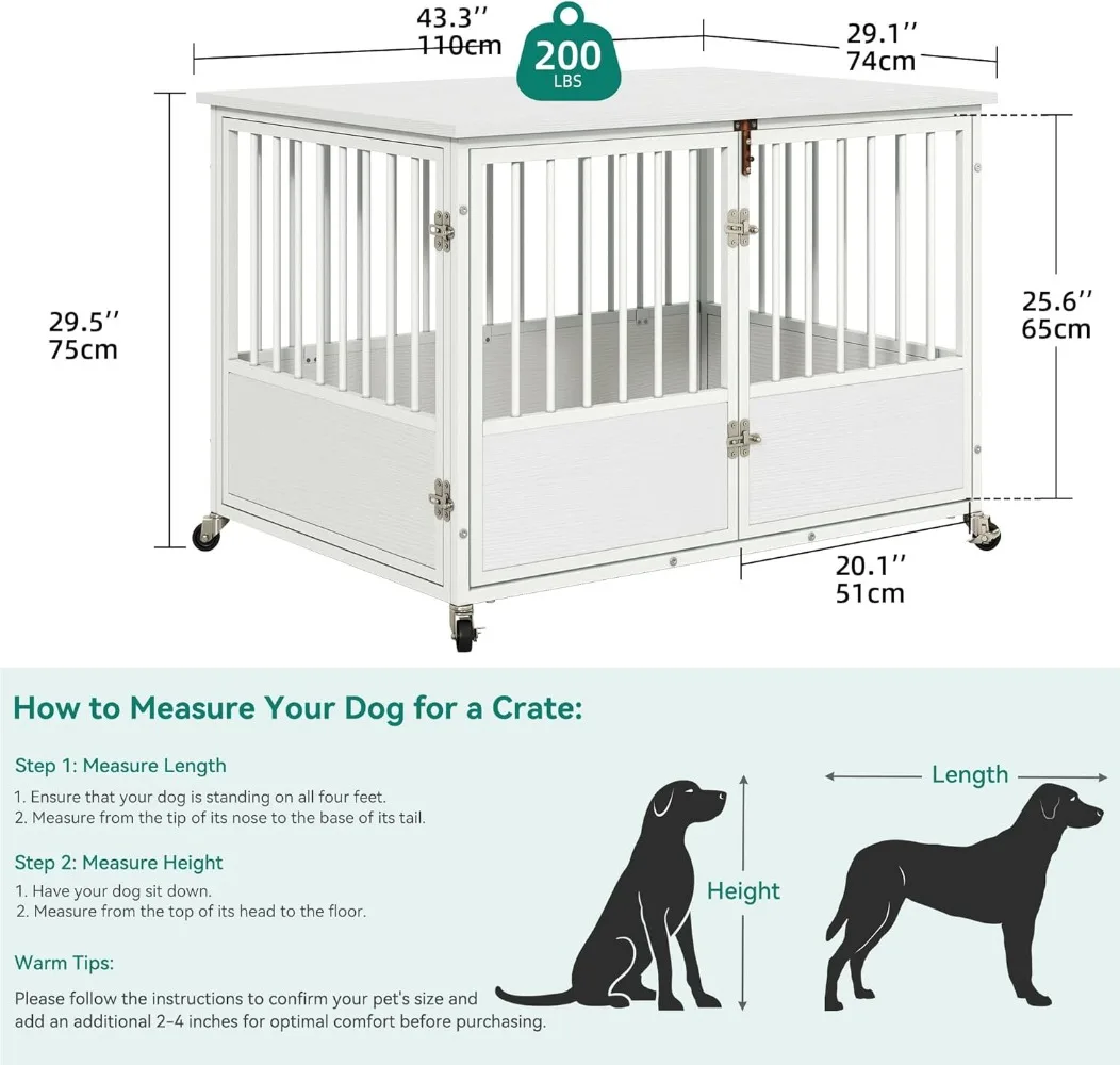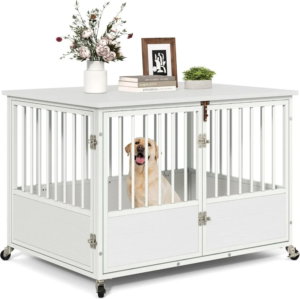 - 360° Lockable Wheels: With built-in wheels, these dog kennel furnitures becomes a breeze to move around your home, allowing flexible placement according to your preferences.The wheels come with locks to secure the dog crate in place