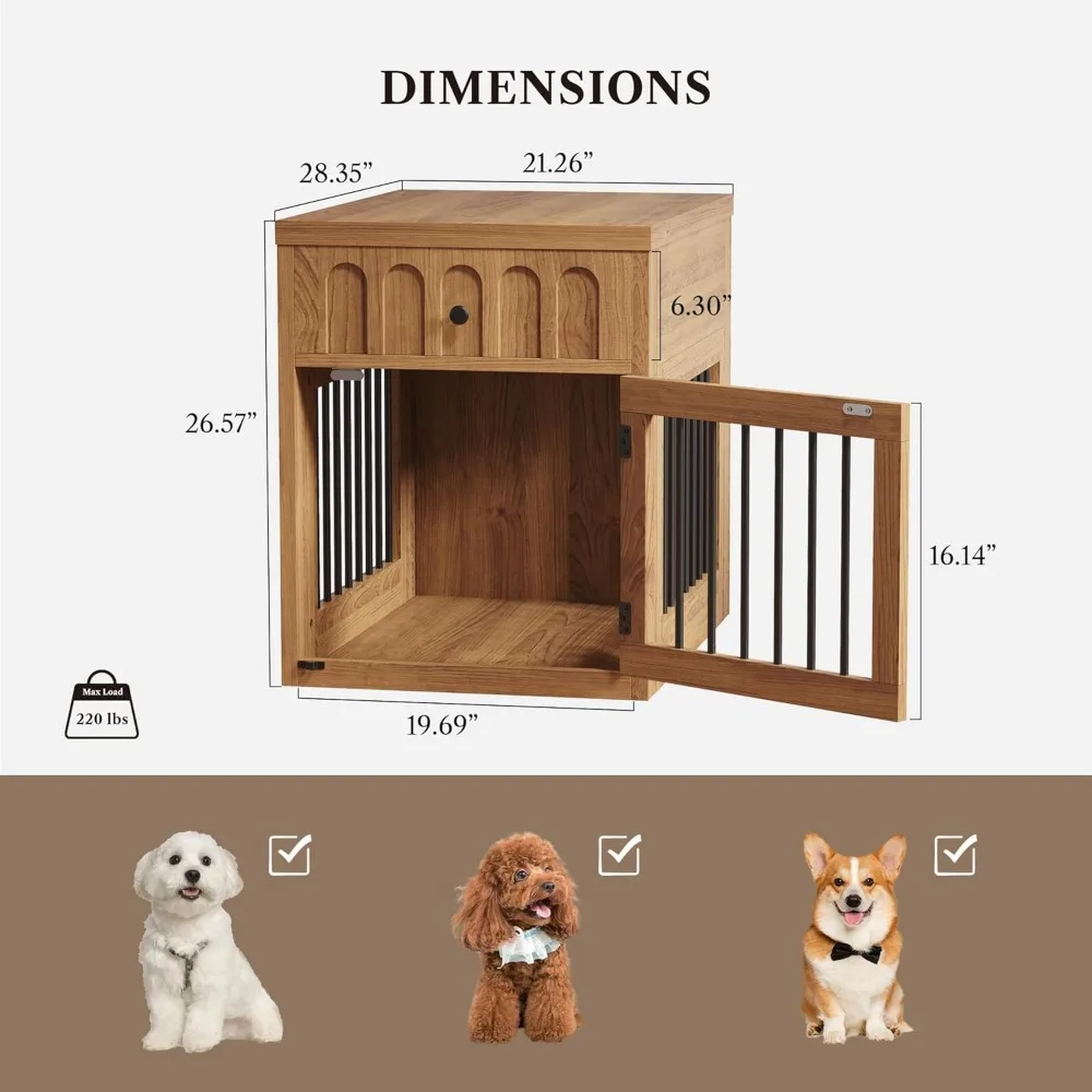 - Versatile Functional Design: This dog kennel doubles as a functional side table or nightstand, providing a cozy resting spot for your pet while adding a stylish element to your home decor. The innovative design saves space and seamlessly blends utility with style